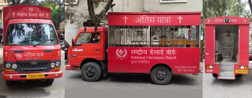 Building on the belief of providing dignity for all, including the dead, the Christian board has been operating mortuary van service in an institutionalized manner since 2021. Christian Board, in collaboration with the State Health Society, Government of Telangana.